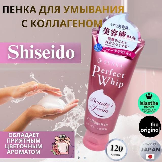 SHISEIDO Увлажняющая пенка для умывания с коллагеном Япония Hada Senka Perfect Whip Collagen In, 120 мл
