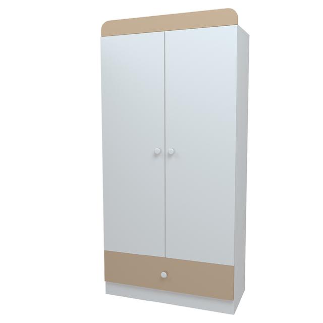Klassiki dizaýn boýunça we çagalar üçin niýetlenen 2 gapyly şkaf. Çaga şkafy 3 sany polkalar we eşik asylýandan ybarat. Şkafyň aşaky böleginde çeker bolup, içki eşikleri we kiçi oýunjaklary ýygnamak üçin niýetlenen. Şkaf 2 dürli reňk bilen öýüňiziň interýerine aýratynlyk berer. Hem gyz hem-de oglan çaganyň ulanyp biljek şkafyň gapaklaryna tutawaçlaryň tegelek görnüşleri dakylan. Ölçegleri: Beýikligi: 190 sm. Ini: 90 sm. Çuňlugy: 47 sm.