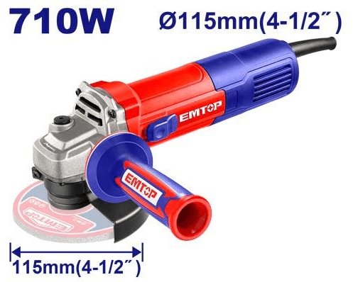 EMTOP EAGR17181 — burçlaýyn ýylmanlaýjy maşyn (bolgarka). Käbir häsiýetnamalary: sarp edýän güýji: 710 W; boş işledilýän aýlaw sany: 12 000 aýl/min; diskiň maksimal diametri: 115 mm; şpindel: M14; goşmaça tutawaç: bar;