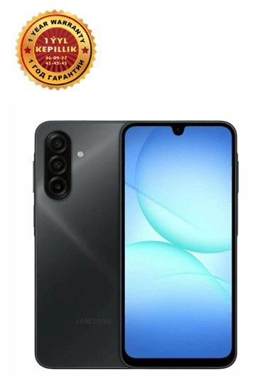 Blue Black reňkdäki Samsung Galaxy A17 — bu 2025-nji ýylyň işjeň durmuş ritmi üçin döredilen stiliň we balanslaşdyrylan kuwwatyň kämil nusgasydyr. Täzelenen ultra-inçe profilli klassyky gara korpusy eýesiniň premium derejesini nygtaýar we ulanmak üçin ýokary amatlylygy (ergonomikany) üpjün edýär. Ýokary öndürijilik: Giňeldilen 6 GB operatiw ýady saýasynda, smartfon köp wezipeliligi aňsatlyk bilen ýerine ýetirýär we goşundylaryň arasynda dessine geçmegi üpjün edýär. Super AMOLED displeý: Uly 6.7 dýuýmlyk Super AMOLED ekrany 90 Gs ýygylygy bilen reňkleriň ajaýyp aýdyňlygy we animasiýalaryň kämil ýumşaklygy bilen geň galdyrýar. Uzak möhletli awtonomlyk: 5000 mAs göwrümli güýçli akkumulýator iki güne çenli ygtybarly awtonomlygy üpjün edip, size elmydama wakalaryň merkezinde galmaga mümkinçilik berýär. Ygtybarly gorag: IP54 standarty boýunça gorag enjamy tozandan we tötänleýin suw damjalaryndan ygtybarly goraýar we gündelik ulanmakda smartfonyň uzak ömürliligini kepillendirýär.