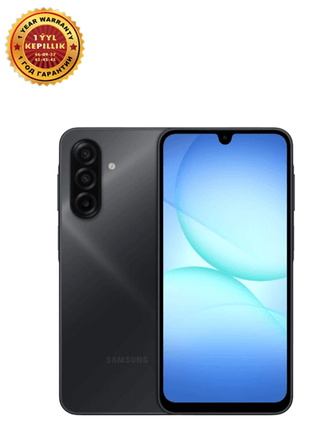 Samsung Galaxy A17 — bu işjeň gündelik ulanmak üçin doly laýyk gelýän uniwersal smartfondyr. Elegant gara reňkde ýerine ýetirilen bu enjam Samsung-yň subut edilen hilini we döwrebap tehnologiýalary özünde jemleýär. Uly ýat göwrümi: 256 GB içki ýat ähli suratlaryňyzy, wideolaryňyzy we programmalaryňyzy çäklendirmesiz saklamaga mümkinçilik berýär, 8 GB operatiw ýat bolsa smartfonyň doňman, çalt işlemegini üpjün edýär. Aýdyň we dury ekran: Samsung-yň ýokary täzelenme ýygylygy bolan özboluşly displeýi sosial ulgamlary göreniňizde ýa-da wideolara seredeniňizde şekiliň janly we ýumşak bolmagyny peşgeş berýär. Ýokary hilli suratlar: Ýokary durulykdaky esasy kamera islendik ýagdaýda dury suratlary düşürmäge we ýokary hilli wideolary ýazgy etmäge mümkinçilik berýär. Uzak wagtlap işlemek: 5000 mAh kuwwatly akkumulýator smartfonyň gün dowamynda işlemegini kepillendirýär, çalt zarýad beriş goldawy bolsa energiýany gysga wagtyň içinde dikeltmäge kömek edýär.