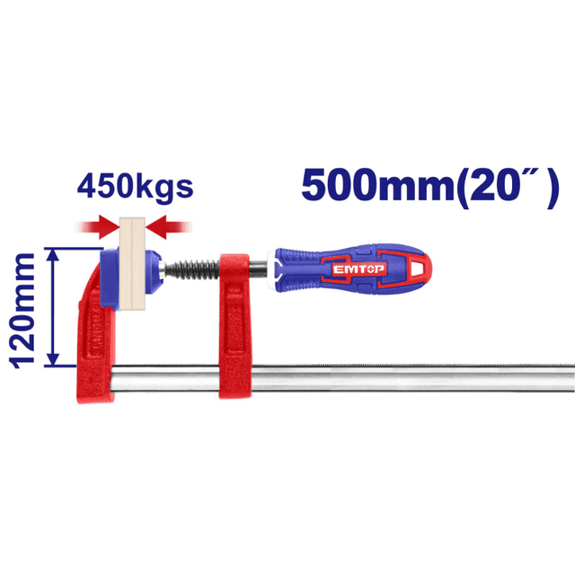 Emtop ECLPF12301 — ölçegi 120×500 mm bolan F-görnüşli gysgyçdyr (strubsina). Hromlanan uglerodly polatdan ýasalan, maksimal gysyş güýji — 450 kgf, nurbat mehanizminiň sapagynyň (rezbasynyň) diametri 15,3 mm, ştangasynyň galyňlygy we giňligi — 8×30 mm, işlemekde amatlylyk üçin rezin örtükli plastik tutawajy bar, agramy — 2,0 kg, Hytaýda öndürilen.