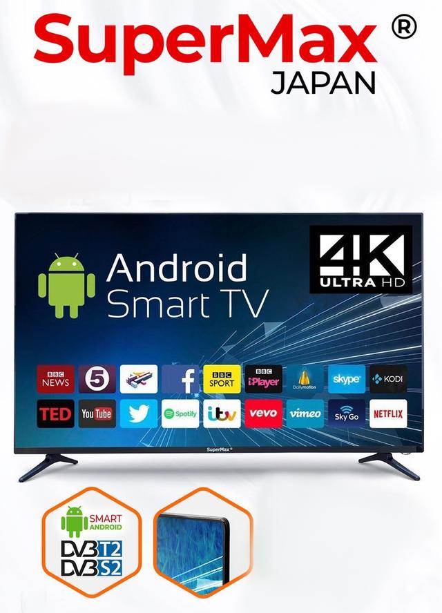 Esasy aýratynlyklary Ekranyň diagonaly: 65 dýuým Işiň reňki: gara Marka: Supermax Operasiýa ulgamy: Android TV Ekranyň tehnologiýasy: QLED Tehniki parametrler Çözgüdi: 3840 × 2160 (4K UHD) Täzelenme tizligi: 120 Hz Kontrast: Mega kontrast HD formaty: 4K UHD Prosessor: dört ýadroly Surat aýratynlyklary Suratyň hili: Ajaýyp reňk öwüşgini Çuň gara reňk Giňiş burçlary Ösüş tehnologiýalary: Akylly suraty gaýtadan işlemek Uýgunlaşdyrylan ýagtylygy sazlamak HDR goldawy Android TV işleýşi Akylly telewizor: Gurlan Google Play programma dükany Ses dolandyryşy Şahsylaşdyrylan interfeýs Multimedia: Popularhli meşhur formatlara goldaw Köp kanally ses Gurlan brauzer Baglanyşyk: HDMI portlary (4 sany) USB portlary (2 sany) Ethernet Wi-Fi 5.0 Bluetooth Ulanyş aňsatlygy Interfeýs: Düşünjeli menýu Ses dolandyryşy Uzakdan dolandyrmak Google Assistent goldawy Ses: Stereo gürleýjiler Dolby Sanly goldaw Obýekt yzarlaýyş sesi Model artykmaçlyklary Dizaýn: Inçe gap Minimalistik çarçuwalar Blackhliumumy gara reňk Çykyş: Refreshokary täzeleniş tizligi Suraty arassalamak Baý reňkler Akylly funksiýalar: Goýmalara çäksiz giriş Yzygiderli täzelenmeler Google hyzmatlary bilen integrasiýa