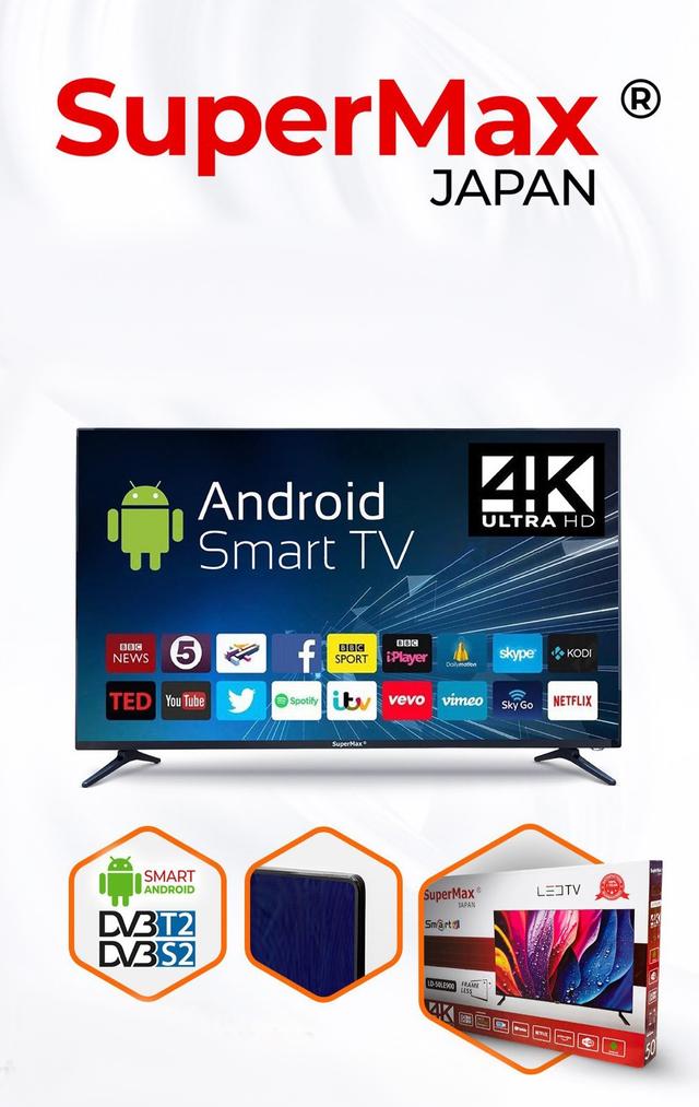 Esasy aýratynlyklary Ekranyň diagonaly: 50 dýuým Işiň reňki: gara Marka: Supermax Operasiýa ulgamy: Android TV Ekranyň tehnologiýasy: LED Surat aýratynlyklary Suratyň hili: Ajaýyp jikme-jiklik Giňiş burçlary Tebigy reňk bermek Ösüş tehnologiýalary: Sanly sesleriň azalmagy Hereketiň öwezini dolmak HDR goldawy Dimerli Dimming Android TV işleýşi Akylly telewizor: Gurlan Google Play programma dükany Ses dolandyryşy Şahsylaşdyrylan interfeýs Multimedia: Popularhli meşhur formatlara goldaw Köp kanally ses Gurlan brauzer Baglanyşyk: HDMI portlary (3 sany) USB portlary (2 sany) Ethernet Wi-Fi 5.0 Bluetooth Amatlylygy ulanmak Interfeýs: Düşünjeli menýu Ses dolandyryşy Uzakdan dolandyrmak Google Assistent goldawy Ses: Stereo gürleýjiler Dolby Sanly goldaw Ses arassala + Obýekt yzarlaýyş sesi Model artykmaçlyklary Dizaýn: Inçe gap Minimalistik çarçuwalar Blackhliumumy gara reňk Çykyş: Suraty arassalamak Baý reňkler Smoothuwaş oýnamak Akylly funksiýalar: Goýmalara çäksiz giriş Yzygiderli täzelenmeler Google hyzmatlary bilen integrasiýa